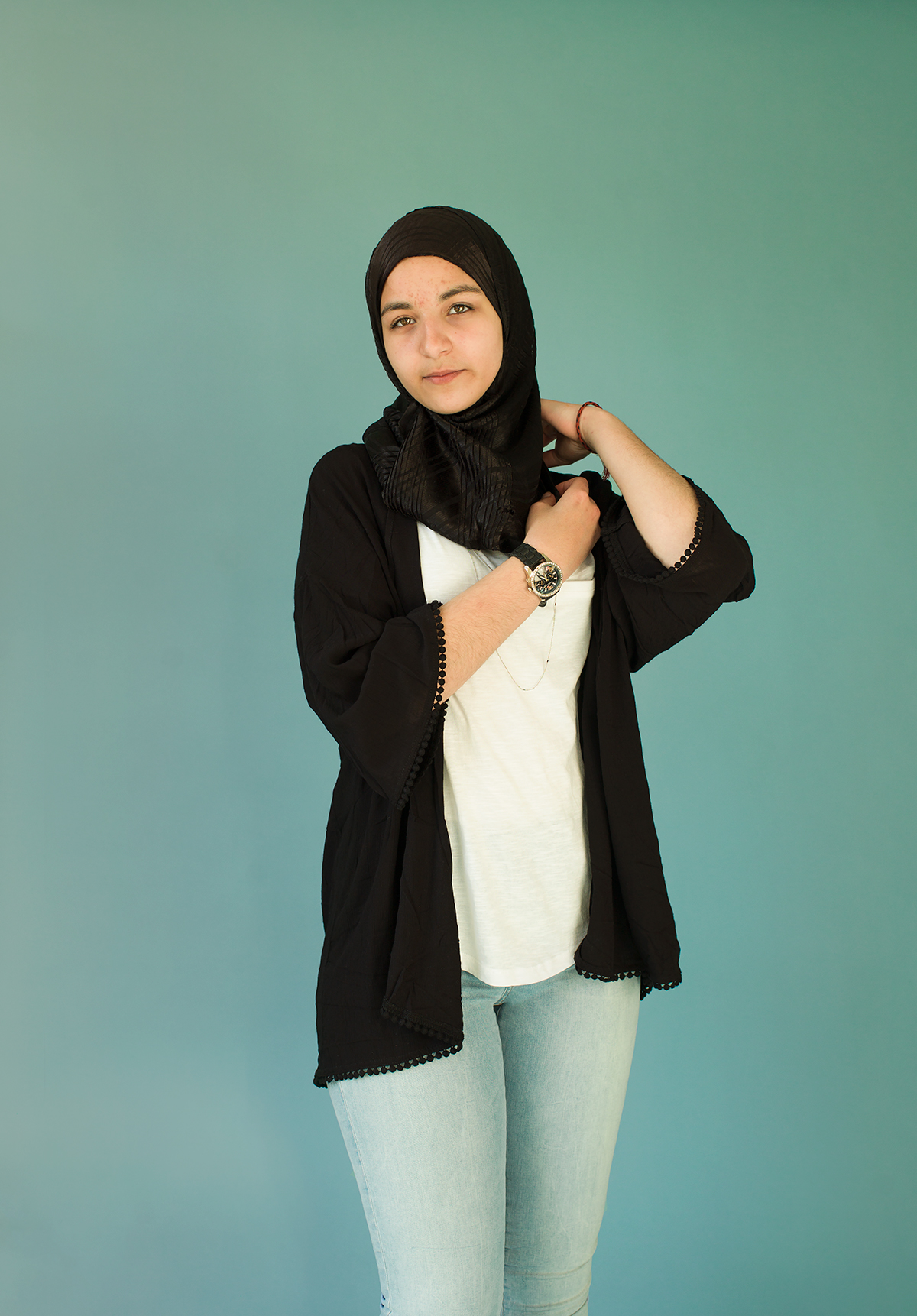 Na de middelbare school wil ik graag een hoofddoek gaan dragen. Een skinny jeans, gestyled met een basic shirt, een vest of een blazer en een hoofddoek. Nu doe ik dit nog niet omdat ik dan te veel opval op school.'