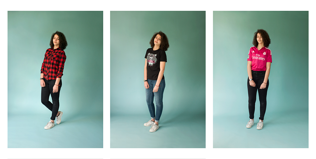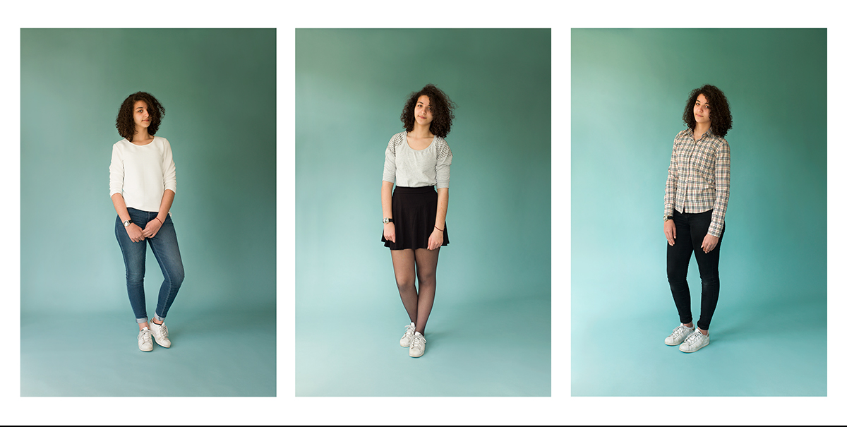 Amina is mijn buurmeisje, ze is 14 jaar en zit in het derde jaar van de Havo. Haar ouders zijn opgegroeid in Marokko en Amina is geboren in Nederland. Schoolgenoten zegen wel eens tegen haar ‘Je komt helemaal niet zo Marokkaans over’. Ik ben deze opmerking gaan onderzoeken door haar elke dag voordat zij naar school gaat te fotograferen. Hoe kom je Marokkaans over? Wanneer zie je er Marokkaans uit? Welke vooroordelen hebben we? En waarom vinden we het zo fijn om mensen in hokjes te plaatsen?